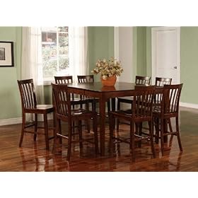 9pcs Contemporary Walnut Counter Height Dining Table & 8 Stools Set: Home & Kitchen. . .