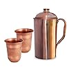 Copper Pitcher Jug with Lid Handmade Indian Drinkware Accessories: Kitchen & Dining. Use a solution of equal quantities vinegar or lemon juice and salt diluted with some water at such times but don't use it regularly. Copperware have antimicrobial properties. Copper utensils and cookware helped to prevent the spread of diseases. In many tests it showed that 99.9% of the bacteria on copper alloy surfaces (with 65% or greater copper content) were eliminated within 2 hours of exposure. According to research at Southampton University in the U.K., MRSA microbes remain alive on stainless steel surfaces for up to three days, whereas the same microbes on a copper surface are eliminated within 90 minutes.Copper ware are prefered because it is durable and it has excellent characteristics. Copper cookware is one of the best heat conductors for all of your cooking. Heat is conducted evenly to the copper pan, allowing the preparation of a dish with less energy regardless of stove top type.The ageless use of copper bears testimony to its myriad virtues and everlasting appeal. Its therapeutic value has been handed down to us through the ages. In fact, water stored in copperware is virtually the elixir of life. Purified, it helps to regulate digestion and cardiac orders, the basis of good health, as practiced by Ayurveda and Rishits from old Vedic times. It has been known for thousands of years that copper metal can inhibit the growth of bacteria, viruses and fungi. Our Scriptures recommend drinking of four glasses of water stored overnight in a copper utensil every morning.Care TipsClean your copperware by hand and avoid dishwasher as the detergent can cause oxidation leading to permanat damage. Also avoid scratchy cleaners like steel wool.