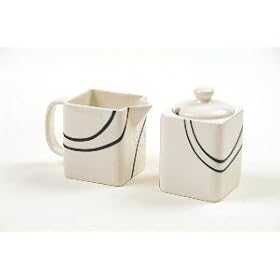Corelle Coordinates Simple Lines Sugar & Creamer Set: Kitchen & Dining. This sugar and creamer set by Corelle will look fabulous in almost any décor. The simple lines in black on the white background will set a contemporary tone in your dining room or kitchen. These stoneware pieces are dishwasher safe for easy cleaning..