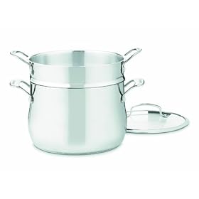 Cuisinart 44-22 Contour Stainless 6-Quart, 3-Piece Pasta Pot with Cover: Kitchen & Dining. Limited lifetime warranty. From the Manufacturer The Cuisinart Tradition What is Cuisinart Contour Stainless Cookware? Premium cookware that features professional construction- and aluminum disc in the base is bonded to a stainless interior and a stainless exterior - a fusion of the best materials for cooking, offering unsurpassed performance. The aluminum encapsulated base maintains even heat distribution, eliminating hot react with food or alter natural flavors. Elegant styling and a robust silhouette make for a professional look - cook with added flair with this unique cookware. Cooking with Ease and Elegance Inspired by the spirit and elegance of European kitchens, Cuisinart Contour Stainless is the ideal cookware for the modern home chef. A brilliant stainless steel construction and pure aluminum encapsulated base deliver quick and consistent heat, while the contoured design adds a unique profile to any kitchen range. With a variety of styles and sizes, each pan is equipped with the versatility and quality to take on any task, whether it's on the stove, in the oven, or under the broiler. And each piece is completely dishwasher safe, so you can prepare delicious meals without large cleanups. Savor the Good Life tight at home with family and friends, with Cuisinart Contour Stainless Cookware. The Cuisinart Details Designed to professionally perform everyday and gourmet culinary techniques, this collection offers precise heat for perfect results, every time. Superior Heat Distribution Pure aluminum-encapsulated base heats up quickly and enables even heat distribution for consistent results. No more hot spots. Stay-Cool Stainless Handles Maintain a solid grip with an always cool, always secure handle, contoured to your hand for extra comfort. Steady Handling Professionally riveted stainless steel handles ensure a lifetime of balanced cooking. Constructed to Last Cuisinart Contour Stainless Cookware features stainless steel and aluminum for unsurpassed durability and performance. We guarantee it with a Lifetime Warranty. Tempered Glass Covers Sleek, flat glass lid with stainless rim seals in moisture and flavor. Glass is tempered for durability to ensure lasting performance. Effortless Cleanup Brilliant stainless steel is conveniently dishwasher safe. Clean and Easy Tapered rims keep pouring drip-free and easy. Ultimate Cooking Versatility Use on stovetop, in the oven, or under the broiler. Oven safe up to 500 degrees F and freezer safe for easy food storage. Lids oven safe to 350 degrees F. Encapsulated base for superior heat distribution Effortless cleanup: all pieces are dishwasher-safe Stay-cool stainless-steel handles Cuisinart Contour Stainless 6-Quart Pasta Pot with Pasta Insert and Cover The Cuisinart Contour Stainless 6-Quart Pasta Pot with Pasta Insert and Cover make cooking everything from angel hair pasta to lasagna easier than ever. The large capacity is perfect for big portions of potatoes or vegetables, and draining liquid off is a breeze. The pot's pure aluminum encapsulated base heats up quickly and enables even heat distribution for consistent results, which means no more hot spots. The pot and insert feature elegant stainless steel construction for professional performance in distinct silhouette designs. The cookware's solid stainless steel riveted handles stay cooler than other handles and the stainless steel cooking surface does not discolor, react with food, or alter flavors. The pot is oven safe to 500° F, the cover is oven safe to 350° F, and the cookware is stove safe ( with the exception of induction ), and broiler safe. The cookware is also dishwasher and metal utensil safe. Features: Includes pasta pot Includes pasta insert Includes tempered glass cover Pure aluminum encapsulated in the base of the pot Fast and even heating without hot spots Elegant stainless steel, distinct silhouette designs Solid stainless steel riveted handles that stay cool Cooking surface does not discolor, react with food, or alter flavors Pot is oven safe to 500° F Cover is oven safe to 350° F Cookware is broiler and stovetop safe ( with the exception of induction ) Dishwasher and metal utensil safe.