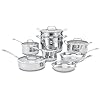Cuisinart 64-13 Contour Hard Anodized 13-Piece Cookware Set: Kitchen & Dining. Beautifully and functionally designed, the elegant styling and a robust silhouette make for a professional look. 64-13 – Cuisinart Contour Hard Anodized 13-Piece Set Elegant and robust silhouette styling for a professional look, maximize the volume and cook with added flair with this unique cookware! Cuisinart Contour Hard Anodized cookware exemplifies exceptional design with its hard anodized aluminum construction. The innovative, three layer construction offers unsurpassed durability and optimal cooking performance in a distinct silhouette unique to Cuisinart's Contour line. Carefully selected to provide all the essentials, this cookware set will please home chefs by offering processional results with an elegantly contoured design that compliments any kitchen. Go beyond the basic with everything you need for cooking and entertaining right at home! Cuisinart Contour Hard Anodized cookware is boiler and oven safe up to 500 degrees, freezer safe, and safe for use on halogen, electric, gas, and glass ceramic stovetops. Product Features Superior Heat Distribution Aluminum core heats up quickly and enables even heat distribution for consistent results. No more hot spots! Premium Non-Stick Interior Reinforced nonstick cooking surface for healthier cooking, lasting food release and easy cleaning. Keep Cooking Cool Maintain a solid grip with the always cool, always secure stick handles, contoured to your hand for extra comfort. Riveted to ensure a lifetime of balanced cooking. Steady Handling Professionally riveted stainless steel handles and side grips ensure a lifetime of balanced cooking. Convenient Tempered Glass Covers Sleek, flat glass lids with stainless rims seal in moisture and flavor. Glass is tempered for durability to ensure lasting performance. Clean and Easy Tapered rims keep pouring drip-free and easy. Ultimate Cooking Versatility Use on the stovetop, in the oven, or under the broiler. Oven safe up to 500°F and freezer safe for easy food storage. Lifetime Warranty 13-Piece Set Includes • 1.5 and 2.5 Qt. Saucepans w/ Covers The saucepan is a favorite in the kitchen. Constructed for quick and even heating, prepare soups, sauces, and sides with ease. Elegantly designed to provide professional results in a sleek silhouette. • 8 and 10 inch Skillets Designed for healthier at-home cooking, the nonstick skillet is every cook's kitchen essential. • 3 Qt. Sauté Pan w/ Helper Handle & Cover An excellent choice for browning, searing, and slow braising, this sleek saute pan offers the professional construction and capacity to handle all your favorite meals. • 4 Qt. Dutch Oven w/ Cover The versatile Dutch oven is ideal for simmering, boiling, and stewing, keeping food moist and full of flavor. • 9 Qt. Stockpot w/ Cover and 24 cm Pasta Insert Cuisinart Contour Hard Anodized Cookware is premium cookware that features the finest materials, constructed for unsurpassed durability and performance. Maximize the volume and cook with added flair with this unique cookware.
