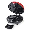 Cuisinart WM-SW2 Dual-Sandwich Nonstick Electric Grill: Kitchen & Dining. To clean, simply wipe off the grill plates when cool. Lunch takes on a whole new dimension with this sandwich grill. Layer cheese, tuna, veggies, mushrooms, or whatever is desired between slices of bread, set on the deep-pocket grill, and close and lock the lid. Sandwiches come out perfectly browned and sealed, with a diagonal indentation making them easy to slice in half. The grill cooks one or two sandwiches at a time, and also turns out waffles and omelets. The nonstick finish keeps food from sticking, although a little butter or oil also helps. A red light comes on when the grill is plugged in and heating up; a green light announces the grill is ready to use. The grill measures 9 by 9 by 3-1/2, and is covered by a three-year warranty against defects.