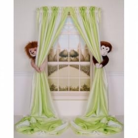 Curtain Critters Plush Jungle Safari Lion and Chocolate Monkey Curtain Tieback, Car Seat, Stroller, Crib Toys Collector Set: Baby. High quality, machine washable. Cute and Cuddly, Curtain Critters Plush Jungle Safari Lion and Chocolate Monkey Collector Set makes the perfect gift! Have a safari, jungle, or animal theme room? Much more than just stuffed animals, children love to take this soft, huggable lion and monkey everywhere they go, on strollers, backpacks, car seats, and even luggage! In quiet times they love to snuggle, then at bedtime its back on the crib, bedpost or curtain to watch over their new best friend! All Curtain Critters come with an elastic safety loop on the back of the head for easy wall attachment as a curtain tieback and child friendly velcro pads to keep the hands firmly in place wherever they go. Head is approximately 5 inches in diameter and arms are standard curtain tieback length. Curtain Critters received 5 Stars by WTS Toy Review and is rated as a good toy for differently challenged children by AblePlay in the areas of physical, sensory, communicative, and cognitive.