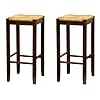 2 29 inch Red Cushion Saddle Back Black Bar Stools: Furniture & Decor. The legs on the stools are solid wood and are in a black finish and it also includes a place to rest your feet. These are 2 new Saddle Back barstools! They have a red seat and are 29 inch tall.