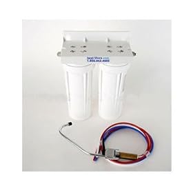 Custom Double Undercounter Water Filter Purifier with Doulton Ceramic: Home Improvement. 12 inch tall, 10 inch wide, 5 inch deep. This double under sink water filter features a KDF/GAC cartridge PLUS a special contaminant filter cartridge! Doulton Sterasyl ceramic pre-filter to effectively remove harmful bacteria, such as E. Coli, Fecal coliform, Samonella, Streptococcus, and cysts (Cryptosporidium, Giardia), and sediment down to 0.9 micron. The cartridge can be cleaned up to 30 times (about once a month). This twin undercounter filter features our long lasting KDF/GAC cartridge (12,000 gallon rating) includes standard faucet chrome with black plastic tip and handle, 8.75 inch tall and has a swivel spout with a reach of 5.5, EZ valve connector, high pressure polyethylene tubing, mounting wall bracket, and housing wrench. Quick-connect fittings make installation a snap! This undercounter filter is placed out of the way, under the sink. It connects to the cold water line with an EZ valve connector inch and dispense water through an attractive long reach LEAD-FREE brass faucet. Quick-connect fittings make for fast, easy installation. A 1/2 inch hole is all that is needed for the faucet stud (all series), but a cover plate is included to accommodate larger pre-drilled holes. 3 year prorated warranty on KDF cartridge, 5 year on components.