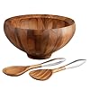 Dansk Wood Classics 16-Inch Round Salad Bowl with Servers, Set of 3: Kitchen & Dining. All pieces are made from staved hard wood, with each unique strip adding to its gorgeous visual texture. Great as a housewarming gift or for use in your own home for years to come, this 16-inch round salad serving bowl with 10-ounce capacity comes with matching servers combine for the perfect salad set. The hollowed-out servers make it easy to serve dressing-drenched salad. A re-introduction of a classic design from decades ago, this salad set from the Dansk Wood Classics line continues to reflect a contemporary, sophisticated approach to home dining and entertaining.