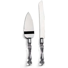 Darice 35745, Knife and Server Set, Faux Crystal: Arts, Crafts & Sewing. Set features Handles of high quality, clear plastic with cut crystal look and one edge of each blade is serrated. Serve the wedding cake in style with this lovely faux crystal handled knife and cake server. Easily personalize by having the set engraved for the occasion. Gift set is packaged with a clear acrylic lid for maximum appeal. Server measures 11 inches long, knife is 13 inches long and handles are 4 inches long.