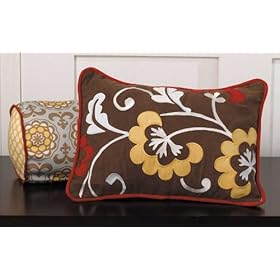 Delilah Boudoir & Bolster Pillow Set: Everything Else. This beautiful set of two pillows features a brown boudoir pillow with a bold graphic floral design in yellow white and red.