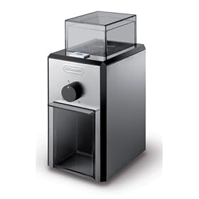 DeLonghi Stainless Steel Burr Coffee Grinder with Grind Selector and Quantity Control: Kitchen & Dining. The grinder also offers a grind selector that makes it possible to choose from coarse to medium to fine depending on the drink--anything from espresso to drip to French press. More than just sleek, modern, good looks, this electric grinder produces freshly ground coffee beans, helping to ensure the freshest, most delicious cup of coffee. The unit's burr grinding wheel creates a uniform ground texture for consistency while at the same time protecting the delicious oils for maximum flavor and aroma. Turn the quantity-control knob to grind the precise amount needed to make from 4 to 12 cups of coffee at a time. Once the specified quantity has been reached, the grinder shuts itself off automatically. Other highlights include a simple on/off button, a transparent lid and ground-coffee container for viewing contents at a glance, self-contained cord storage, and a dual safety system that shuts the unit off automatically with either the lid or the ground-coffee container out of place.