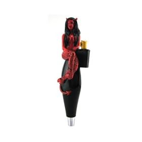 Devil Maiden Beer Tap Handle: Kitchen & Dining. Features: Made of wood and plaster. Meet the ultimate kegerator tap handle. She's sexy, she's bad and she exists to pour you cold, delicious draft beer. Made of wood and plaster, this saucy Devil Maiden sits atop your tap handle where she's sure to catch everyone's attention. In stock and ready to ship. Perfect for Halloween parties. .