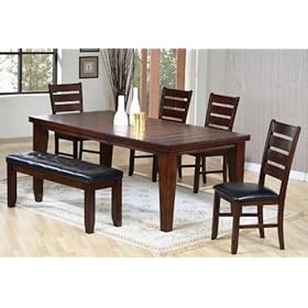 6pc Dining Table & Chairs Set with Ladder Back Dark Oak Finish: Furniture & Decor. You will receive a total of 1 dining table, 4 side chairs and 1 bench chair.