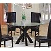 Dining Table with Crossed Base in Espresso Finish: Furniture & Decor. Brings modern beauty to the room. Dimension: 56W x 56L x 30H Finish: Espresso Material: Wood, Glass Dining Table with Crossed Base in Espresso Finish Features crossed legs stand base. Round glass table top. Clean line design. Matching dining chairs are available separately.