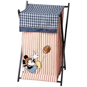 Disney Vintage Mickey Hamper: Baby. The hamper liner is made of 100% cotton. Vintage Mickey Hamper featuring Mickey kicking a field goal. Measures 16.5 inch wide x 28 inch tall x 15 inch deep. Mesh bag inside hamper is removable for easy loading and storage of laundry. Care instructions: machine wash cold with like colors in gentle cycle, do not bleach, tumble dry low, and iron on lowest setting as needed.