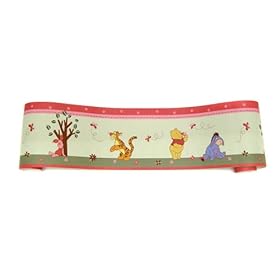 Disney Pooh Wall Border Delightful Day: Baby. This whimsical wallpaper border features that silly old bear Winnie the Pooh and his friends Piglet, Eeyore, and Tigger. The Disney Pooh Delightful Day inch Wallpaper Border is a double roll of 30 feet. Pre-pasted wallpaper border is easy to apply and is washable/strippable.
