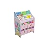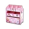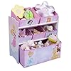 Disney Princess 3 Bin Organizer With Roll Out Toy Box: Toys & Games. The middle tier contains 3 fully-printed bins with assorted designs. The Disney Princess 3 Tier Toy Organizer is a great storage and organizational piece for any room. Each tier serves its own function and fits in nicely with the look, feel, and purpose of the entire piece. The bottom tier is a roll-out toy box for storage. The top tier is an additional storage shelf for various smaller items.