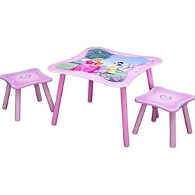 Disney Princess Table & Stool Set by Delta: Baby. Your kids will love the pretty colors and whimsical design. The Disney Princess Table & Stool Set by Delta is built of solid wood construction and made to last. Features include a large, easy-to-clean table surface and two stools.