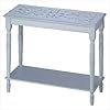 Distressed White Wood Carved Table - Style 34709: Home & Kitchen. A decorative addition to any room! ''Shabby elegance'' table with turned legs and intricate carvings. Exquisitely carved flourishes add an air of refinement to this appealing accent table. Wood with distressed white finish.