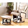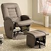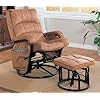 Donald Leather Like Brown Glider & Ottoman: Home & Kitchen. Sleek pillow armrests, padded seating and headrest, and a pillow-tiered seat back provide a cozy seat. Description: Seat yourself in this ultra comfortable glider chair and matching ottoman. Rounded bases on the ottoman and chair house built in glider functions for a gentle gliding motion that lulls you into a relaxed state.