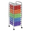 Early Childhood Resource ELR-009-WH 10 Drawer Mobile Organizer - White: Home & Kitchen. Round, chrome-plated knob drawer pulls. This practical organizer can hold just about everything from art and crafts projects to office supplies or even hand tools! With its 10 drawers, its perfect for the home, office or garage. Polypropylene drawers easily slide in and out on the chrome plated steel frame rails. This multi-purpose organizer rolls effortlessly into narrow spaces on 4-swivel casters (2-locking). White finish. Assembled Unit Dimensions: 12.75 W x 15.4D x 38.0 H. Drawer Dimensions: 11.25 W x 15.4 D x 2.75 H. Tubular, chrome-plated steel frame and top shelf. Translucent Polypropylene drawers.