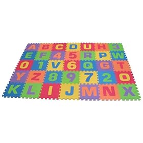 Edushape Edu-Tiles 36 Piece 6x6ft Play Mat, Letters & Numbers Set: Baby. The upper case letter set includes 36 tiles. Safe, soft, play giant interlocking foam floor tiles are a perfect product for designing specific play areas to suit your child's lifestyle and needs. The giant interlocking tiles make excellent play mats, storage boxes, tents, and creative games. Each tile is made of high density foam measuring 12 inch x 12 inch and .5 inch thick making it safe for children of all ages from birth. It is soft, washable, durable, and colorful. The assembled mat covers a 6x6 feet (72 inch X 72).