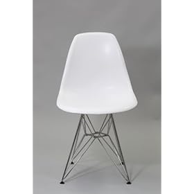 Eiffel Chair - Steel Wire Based Molded Side Chair: Home & Kitchen. The Eames's adapted manufacturing techniques developed during World War II to mass-produce this design in side and armchair versions. The molded plastic chairs are a flexible and comfortable seat with a variety of base options. New materials, especially those that held promise for doing more with less, fascinated the Eames's throughout their careers. Plastic was no exception. they saw in it the chance to form organic seat shells that conform to the body's shape. As they typically did, the Eames's required that materials be expressed honestly and unselfconsciously so these were the first one-piece plastic chairs offered without upholstery or covering.