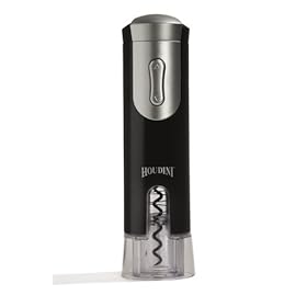Electric Houdini Corkscrew Wine Opener Black: Kitchen & Dining. The second feature of the Metrokane Black Electric Houdini Corkscrew is by just lifting the Metrokane Black Electric Houdini Corkscrew away from the wine bottle and it ejects the cork automatically. Suddenly all other electric corkscrews are obsolete with the New Metrokane Red Electric Houdini Corkscrew! The Metrokane Black Electric Houdini Corkscrew has four very unique features that make it a cut above the rest. The unique feature of the Metrokane Black Electric Houdini Corkscrew is just by lowering the Metrokane Black Electric Houdini Corkscrew onto a wine bottle and it pulls the cork automatically. Don't know how charged the battery, well with the third unique feature an illuminated LCD screen on the Metrokane Black Electric Houdini Corkscrew shows the number of cork pulls you can make before re-charging.