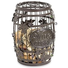 Wine Barrel Cork Cage: Kitchen & Dining. The lid also lifts opens for you to place your bottle of wine inside the cork cage. What should you do with all those corks you've managed to collect from the one-of-a-kind bottles of , special events or diners? Tuck them in a drawer or box until you create a special cork craft? Why keep them out of sight? Display and store your cork collection in something unique and fun!The wine barrel Cork Cage is a creative solution for your cork storage. Cleverly crafted from metal with multi-colored glass accents, this is sure to be a conversation starter. Not only will this cork cage hold your corks, but it can also display a bottle of ! This makes our wine barrel Cork Cage a very memorable way to give a bottle of wine to your cork collecting friends. To safely store your cherished wine corks, simply drop them through the opening at the top of the wine barrel. This is the perfect gift for your cork collecting friends or even for you!15H x 5 1/2W x 5 1/2D.