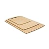 Epicurean 2-Piece Prep Series Set, Natural: Kitchen & Dining. They are heat resistant up to 350-Degree and are designed with a handle opening on the end of the board. Why Epicurean? Epicurean brand products are synonymous with proficient and improved food preparation. From dishwasher safe cutting boards to an array of innovative utensils, Epicurean has revolutionized wood kitchenware products. Made of many layers of FSC certified paper pressed together with a food safe resin, all Epicurean products will last for years of daily kitchen use. All products are made in the USA and designed with a focus on function but also with a concern for environmental stewardship. From the heavy duty Big Block boards to the agile Kitchen Series utensils, Epicurean sets a higher standard for every well equipped kitchen. From Skate Parks to Cutting Boards What do skateboarders and foodies have in common? They're both cutting it up on the same durable material. In 2003 Epicurean was founded by custom skate park manufacturer TrueRide as a way to repurpose excess skating surface material used by the company. The founders of TrueRide knew of the history of the surface material in commercial kitchens, so creating a line of home food prep surfaces from scrap was as natural as, well, skating on it. TrueRide skate parks last for years outdoors with extensive abuse from both weather and skaters, so you can be sure your Epicurean Cutting Surface can handle even the hardest working kitchen. Eco Initiatives Epicurean understands the relationship between the products we manufacture and the environment we all live in. By purchasing Epicurean products, you are making a consumer statement and showing your commitment to green products and green business practices. Epicurean is dedicated to creating long-lasting products that are manufactured with sustainable manufacturing practices and made from environmentally conscientious materials like recycled paper, plastic, and FSC certified papers. Epicurean's manufacturing facility is founded on principles of efficient and responsible use and reuse of manufacturing materials, and has received multiple awards for its ethical business practices and architectural design. Every year Epicurean employees participate in a Tree Planting Day to help offset the manufacturing process. Epicurean Wood Fiber Materials Epicurean cutting surfaces are fabricated using materials that gain their natural look and texture from the organic contents that comprise them. Each color is composed of a set of fiber sources layered together and pressed along with a food safe resin to form a sheet that has unequaled food preparation properties. Each color of Epicurean cutting surfaces has slightly different features based on the blend of its sources, though all of them share the fact that they are a wood fiber kitchen tool that is dishwasher safe. Use and Care All Epicurean cutting surfaces offer a durable design that can stand up to the rigorous daily use of any busy kitchen. They all resist staining and offer maintenance-free convenience--no need to oil or bleach. Though stain-resistant, the cutting surface may stain if left in contact wit[5955] Epicurean cutting boards are a practical and distinctive improvement from poly, glass and wood cutting boards. They have all of the best qualities and none of the bad-in one highly functional surface. Every design is thoughtfully detailed for functionality in use, clean up and storage. All epicurean cutting boards are designed to fit in the dishwasher, will be easy to clean, and will not harbor bacteria. Cutting on an epicurean cutting board will not dull your knives because the surface will score slightly, which helps it protect your knife's edge. Epicurean has a company eco initiative commitment. They are green guard certified, and use sustainable manufacturing practices with minimal recyclable packaging. Epicurean features a set of 2 prep series wood composite cutting boards. These boards measure 14.5 by 9.5 by 3/16-Inch thick and 10 by 7 by 3/16-Inch thick. Dishwasher safe.