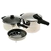 Fagor Splendid 6-Quart Pressure Cooker: Kitchen & Dining. There is also proper waste management and recycling procedures in place after the manufacturing process is completed. In addition to numerous European product certifications and environmental stewardship awards, Fagor is also notably a participant in the Energy Star program in the USA, a joint program of the Environmental Protection Agency and the Department Of Energy. Pressure cooking uses pressurized steam to cook healthy meals with beans, grains, meat, poultry, and seafood in much less time than many other cooking methods require. This Splendid pressure cooker holds a maximum capacity of 6 quarts of Italian chicken soup or beans with sausage and works on all heat sources. The cooker is constructed of high-quality 18/10 stainless steel with an encapsulated aluminum base for even and efficient heat distribution. For safety, the pressure cooker has dual pressure settings on its handle--one in a dial control and another on a valve. Other safety measures include two pressure release valves and a locking handle to prevent the unit from opening while under pressure. A visual indicator lets you know when all the pressure has been released and the cooker is ready to open. This pressure cooker is dishwasher-safe. --Cristina Vaamonde From the Manufacturer Fagor is Green: Fagor's mission is to use resources efficiently to preserve the environment and save energy, developing highly efficient products that consume less and save money; contributing to a healthy planet for us and our future generations. From a social perspective, Fagor's environmental policy strategy offers advantages to both workers and consumers. It provides workers with environmentally-appropriate working conditions, which, among other benefits, minimizes and eliminates the handling of hazardous materials, while for consumers, the end-users of Fagor's products and services, it allows for efficient use of the appliances, which reduces energy and water consumption. Fagor has manufacturing systems established to minimize environmental impact on soil, water, energy, and air during the production process. Products that bear the energy star label allow consumers to recognize such products that have been manufactured to save money and protect the environment through energy efficient products and practices.