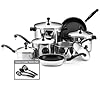 Farberware Classic 12-Inch Fry Pan with Lid and Helper Handle: Kitchen & Dining. Because the pan is 3 inches deep and comes with a tight-fitting, domed lid, it is roomy enough to fry chicken and sauté vegetables and can also be used for braising short ribs and sauerkraut or for cooking chili on the stovetop or in the oven. Functional as well as beautiful, this 12-inch frying pan is made of heavy 18/10 stainless steel polished to a mirror finish. The pan has an aluminum core in its base to spread heat quickly and evenly. The core is completely clad in stainless steel so, like the rest of the pan, the bottom resists corrosion and discoloring and cleans up easily. Thick rolled rims add durability and make it possible to pour from the pan without dripping. (The handles are oven-safe to 350 degrees F and stay cool on the stovetop.) The pan is dishwasher-safe and comes with a lifetime warranty against defects.