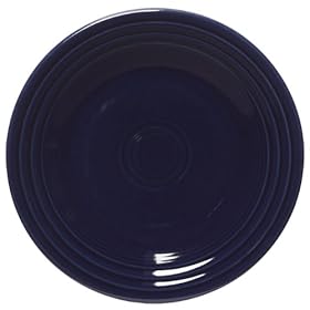 Fiesta 9-Inch Luncheon Plate, Cobalt: Kitchen & Dining. An extensive selection of accessories sets the table for entertaining any number of guests and all glazes are 100 percent lead-free. Swing back into the 1940s and 50s with this retro classic 9-inch plate for serving up a stylish lunch. This essential piece for any Fiestaware collection offers a versatile choice for salad or dessert, sandwiches, appetizers, and party snacks. The art deco streamlined design, with signature rings and colors, has stayed in vogue with timeless flair. Mix-and-match in an array of complementary shades from sunflower yellow to traditional turquoise for fun, or coordinate with dinnerware pieces for a fully monochromatic look. Built to last, these restaurant-grade, chip-resistant dishes are safe in the microwave and dishwasher.