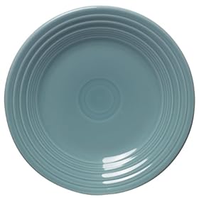 Fiesta 9-Inch Luncheon Plate, Turquoise: Kitchen & Dining. An extensive selection of accessories sets the table for entertaining any number of guests and all glazes are 100 percent lead-free. Swing back into the 1940s and 50s with this retro classic 9-inch plate for serving up a stylish lunch. This essential piece for any Fiestaware collection offers a versatile choice for salad or dessert, sandwiches, appetizers, and party snacks. The art deco streamlined design, with signature rings and colors, has stayed in vogue with timeless flair. Mix-and-match in an array of complementary shades from sunflower yellow to traditional turquoise for fun, or coordinate with dinnerware pieces for a fully monochromatic look. Built to last, these restaurant-grade, chip-resistant dishes are safe in the microwave and dishwasher.