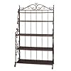Finley Home Hampton Wood Bakers Rack - Heritage Oak - ALZ320: Home & Kitchen. The top portion is constructed of heavy-duty wrought iron and features two pine shelves. With lots of storage space quality materials and an elegant appearance the Hampton Wood Bakers Rack - Heritage Oak will make a lovely addition to your dining room. Built large to double as a buffet this bakers rack is ideal both for storing dishes and glasses and for serving food. Buffet features a cupboard on each end with elegant glass-front doors. Two center drawers are perfect for storing silverware and serving utensils. A full-width lower shelf is open for easy access to whatever you use it for. This buffet is constructed of top-quality pine in a Heritage Oak finish. You'll appreciate the craftsmanship and details that went in to this bakers rack.