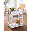 Folding Island Rectangle Kitchen Cart w/ButcherBlock Style Top: Home & Kitchen. The versatile shape helps you make the most of your kitchen's layout. Enjoy more counter space and storage--no costly kitchen remodel required! This folding island with rectangular butcher-block top gives you an impressive 5-square-feet of prep area, plus convenient stow space, instantly. If the missing ingredient in your cooking area is space, this cart completes your recipe for kitchen contentment. It's essential. At 36H, this cart is just the right height for prepping meals, making coffee, decorating cookies with the kids, or even crafting--just pull up a stool. It also gives storage galore. The clever layout provides a towel/utensil bar, a rack for eight wine glasses below the tabletop, and two shelves--great for housing plates, wine bottles, appliances, serving utensils, you name it. Even better, it looks good. The cart is constructed of solid wood, so it's sturdy, substantial, and adds a handsome designer touch--choose the finish that best complements your decor. It makes an attractive serving station when you entertain, eliminating clutter on your dining table. Plus, it's equipped with locking caster wheels so you can move it where you need it most, then secure it into place. Because it's rectangular, you can use it as an island, tuck it into a corner, put it flush against the wall, or set it next to your counter. And for the times you need more floor space instead, the unit folds down and stows out of sight--something you can't say about permanent counters or islands! Serve up space, storage, and contentment in your kitchen with this must-have cart.