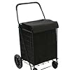 Folding Shopping Cart - with Liner and Lid (Blue) (37H x 18W x 23D): Home & Kitchen. No assembly tools needed, just snap on the front wheels and you're ready to roll! Dimensions: Folded, 43h x 8w x 9d; Open, 37 inch H x 18W x 23D. Do you love to shop till you drop? You'll never worry about dropping your purchases when you take this super-capacity foldaway grocery cart along on your shopping excursions. Sturdy tubular steel framework and durable, maneuverable nylon double wheels are designed to carry 100 pounds with ease. This smooth-rolling shopping cart has an extra large capacity (3.72 cubic feet), with a heavy duty, PVC-coated water-resistant liner, and folds up easily for convenient storage. Liner dimensions 21 inch H x 17 inch H x 18 inch D. Useful for transporting groceries, large loads of laundry, picnic supplies, camping gear and just about anything else you need to haul. Other carts get left behind, but you'll always want to keep this Folding Shopping Cart handy. Weight of cart (when empty): 8 pounds.