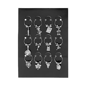 Franmara Wine Glass Charms - Set of 12, Charm: Gourmet Collection: Kitchen & Dining. Each unique pewter charm clasps around a wine glass stem. Franmara Wine Glass Charms - Set of 12 Guests can easily identify their wine glasses at a party with these unique charms. Each set comes with a velveteen pull-string sack.