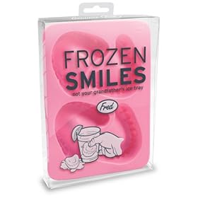 Fred Frozen Smiles Ice Cube Tray: Kitchen & Dining. The hilarious Frozen Smiles ice cube tray from Fred is made of food-safe synthetic rubber and is designed to produce four denture-shaped ice cubes. Get grins immediately from guests at your next cocktail party. Measuring 4-1/2 by 5-3/4 inches, the tray won't take up much room in the freezer, but will keep conversations going and going.