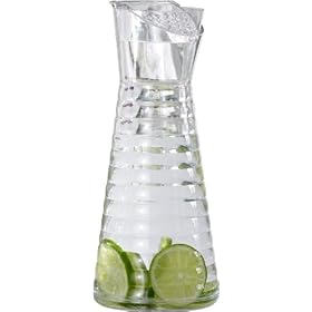 Emsa Summertime Carafe, 1-Quart: Kitchen & Dining. Made of durable SAN, but with the look of expensive mouth blown glass. Emsa is a leading German manufacturer of kitchen and home accessories. Countless design awards are evidence why consumers and professionals in more than 140 countries trust the Emsa name. The Wave Carafe from Emsa is an elegant, yet practical carafe, perfect for water, juice, ice tea, mixed drinks. A removable strainer insert holds back ice cubes and citrus slices. Comfortable to hold and pour. 32-fluid ounce capacity.