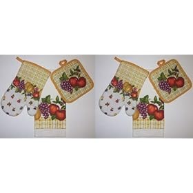 FRUIT MEDLEY inch 2 KITCHEN TOWELS, 2 OVEN MITTS & 2 POT HOLDERS - 6 PIECE SET: Home & Kitchen.