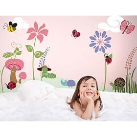 Girls Room Wall Decor - Bugs & Blossoms Wall Mural Stencil Kit: Home & Kitchen. Wall stencils included: two 3-foot flower stencils, one 2-foot flower stencil, grass stencil, 4 ladybug stencils, grasshopper stencil, bee stencil, snail stencil, 3 dew drop stencils, butterfly stencil, dragonfly stencil, rhino beetle stencil, 2 cloud stencils, mushrooms stencil, praying mantis stencil, and caterpillar stencils. Big! Buggy! Beautiful! The Bugs & Blossoms Mural Stencil Kit by My Wonderful Walls makes it easy and fun to create an enchanting flower garden wall mural for your girl. There is absolutely no artistic skill required! Our large garden theme stencils make painting a kids' mural fast, fun and easy. All stencils are self-adhesive, so no tape or glue is needed. Just stick the stencil to the wall, paint, remove, and reuse them again and again. And with 23 delightful garden theme designs, you can paint this floral girl's room mural on one wall or all four! In this DIY wall mural painting kit, you will receive 23 wall stencils, foam brushes and a detailed instruction and color guide. Is ideal for baby girls, toddler rooms, tween spaces, teenage girls and even adults.