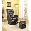 Glider Rocker with ottoman. Brown leather like vinyl: Everything Else. Brown leather like vinyl glider with a plush padded seat and back, matching ottoman is included.