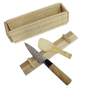 Global Decor Asian Collection Sushi Press Kit: Kitchen & Dining. This kit includes: wooden rice paddle, bamboo scroll, pressboard, mold and base, and sushi knife. Global decor sushi press kit.