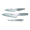 Global G-835/WSD - 6 Piece Knife Set with Block with Black Dots: Kitchen & Dining. Because the knives are very light weight they reduce hand fatigue. Global 6 Piece Black Dot Block Set. Set comprises of 7 inch Asian cook's knife, 8.25 inch carving knife, 8.75 inch bread knife, 5.25 inch utility knife, 4 inch paring knife plus stainless steel counter top storage block with block dots on side of block (G4, G3, G9, GS3, GS7 AND G835BD). Loved by professional chefs around the world, Global knives are an excellent choice for the serious home cook. The thin and razor sharp Global blade allows the cook to cleanly slice through foods, preserving the integrity of the ingredient and maximizing its flavor. The majority of Global knives are ground to a straight point rather than the western style of beveling the edge. To balance their knives Global uses a hollow handle that is filled with just the right amount of sand to create the correct balance. The handle has its own unique darkened dimples for a non-slip grip. Global knives have a smooth contour and seamless, all stainless construction that eliminates food and dirt traps.