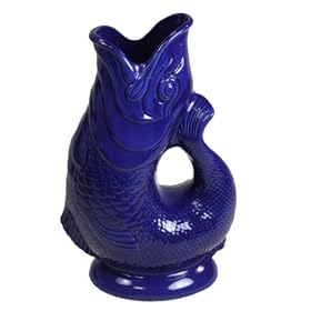 Gluggle Jug Blue Jug, Extra Large, 10-Inch: Kitchen & Dining. A fascinating item of tableware that is sure to add character to your home. Designed to gurgle, this unique Wade product with its classic fish design, will be the talking point in more ways than one, every time it is put to use. Never before has adding liquid to a drink or pouring water on its own been such fun. Fully glazed, the Gluggle Jug is another example of Wade's design abilities, production skills and manufacturing prowess which place Wade Ceramics in a league few can catch. The ever popular Gluggle Jug range has grown, with four exciting new designs; Orca the Whale, a dolphin, an alligator and a hippocamp, a mythological creature with a horse's head and a scaly fishlike tail. Each Gluggle Jug is designed as a fully functioning water jug but has its own sound effect.