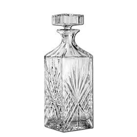 Godinger Dublin Whiskey Decanter: Kitchen & Dining. Its squared shaping provides a generous canvas for the Dublin cuts while creating a muscular air that suits whiskey well. Godinger’s Dublin collection features a classic, light-catching design to dress up dinners and accent special occasions. Fashioned from 24-percent lead crystal, Dublin combines diamond and wedge cuts in a beloved Irish style that sparkles brilliantly. The heavy weight of the rich materials feels satisfying in the hand and lends durability to the elegant look. A wide range of serving and accessories, Dublin pieces are suitable for holidays and parties as well as sophisticated daily meals.This handsome Dublin whiskey decanter adds sophistication to the home bar. Standing 12 inches high, the decanter holds 750 milliliters and should be washed by hand for best care.