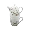 Gracie China Karlys Butterflies 3-Piece Porcelain Tea For One, Stacked Teapot and Cup