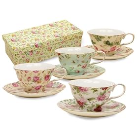 Gracie China Rose Chintz 8-Ounce Porcelain Tea Cup and Saucer, Set of 4: Kitchen & Dining. Gracie China's Rose Chintz Collection, by Coastline Imports, is lovely porcelain which can complement the kitchen, dining and living room.