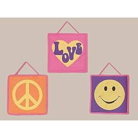 Groovy Pink Peace Sign Wall Hanging Accessories by JoJo Designs: Baby. These wall hangings also make great gifts. These adorable wall hangings by JoJo Designs have been created to coordinate with the matching children's sets. This will complete the look and feel of this adorable bedroom theme for your child. These plush handcrafted wall art hangings are great to add dimension and a splash of color to any bedroom. You will receive a set of 3 wall hangings that are made by JoJo Designs and goes with the matching set perfectly.