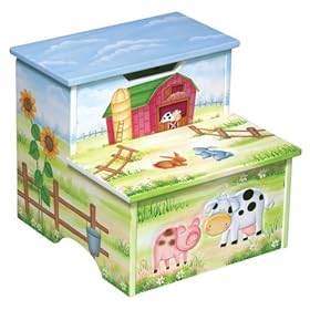 GuideCraft Farmhouse Collection Storage Step - Up: Toys & Games. Adult assembly required. GuideCraft Farmhouse Collection Storage Step - Up gives kids a boost up to bed, bathroom sink and more! Fun, country imagery abounds on this Farmhouse Collection Toy Box from Guidecraft. Great for bedsides and other places kids can't quite reach, the Storage Step-Up delivers top-notch design and super-fun decor for children ages 3 and up. Has storage below the top step for toys and games. Measures 13 1/2 x 13 1/2 x 12 1/2 inch and weighs 11 lbs.