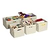 Guidecraft Mission White Baskets - Set of 5: Home & Kitchen. Two large bins: 13W x 9D x 6.5H. Works beautifully in a playroom, family room or kids room. The collection boasts a great selection of storage, seating and accessory pieces. Set of 5 natural cotton canvas storage bins. Three small bins: 8W x 9D x 6.5H. Adult assembly required.